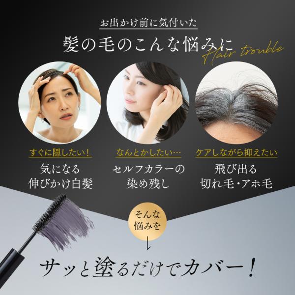 お出かけ前に気になる白髪を手軽にサッと隠せる、国産馬油配合(保湿成分)のヘアマスカラ。使うたびに徐々に染まり、重ねて数回塗布することで自然な仕上がりに着色します。髪色に合わせてナチュラルブラック、ダークブラウン、ライトブラウンの3色から選べます。シリコン、ジアミン系染料、酸化剤、鉱物油不使用。