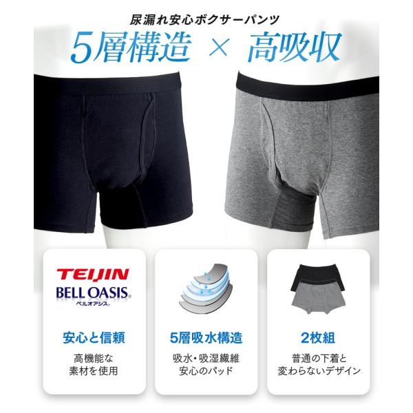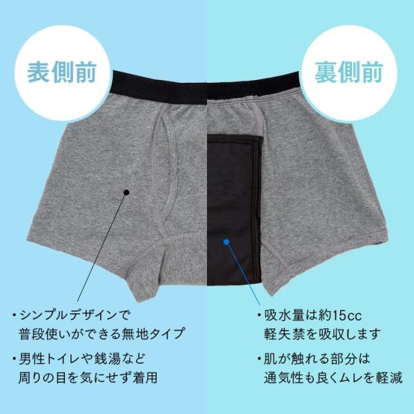 尿漏れパンツ 男性用 2枚組 15cc 前開き 失禁パンツ ボクサーパンツ 吸水パンツ 軽失禁 軽い尿漏れ 紳士用 尿失禁 メンズ 失禁対策 介護パンツ
