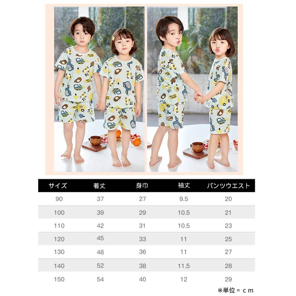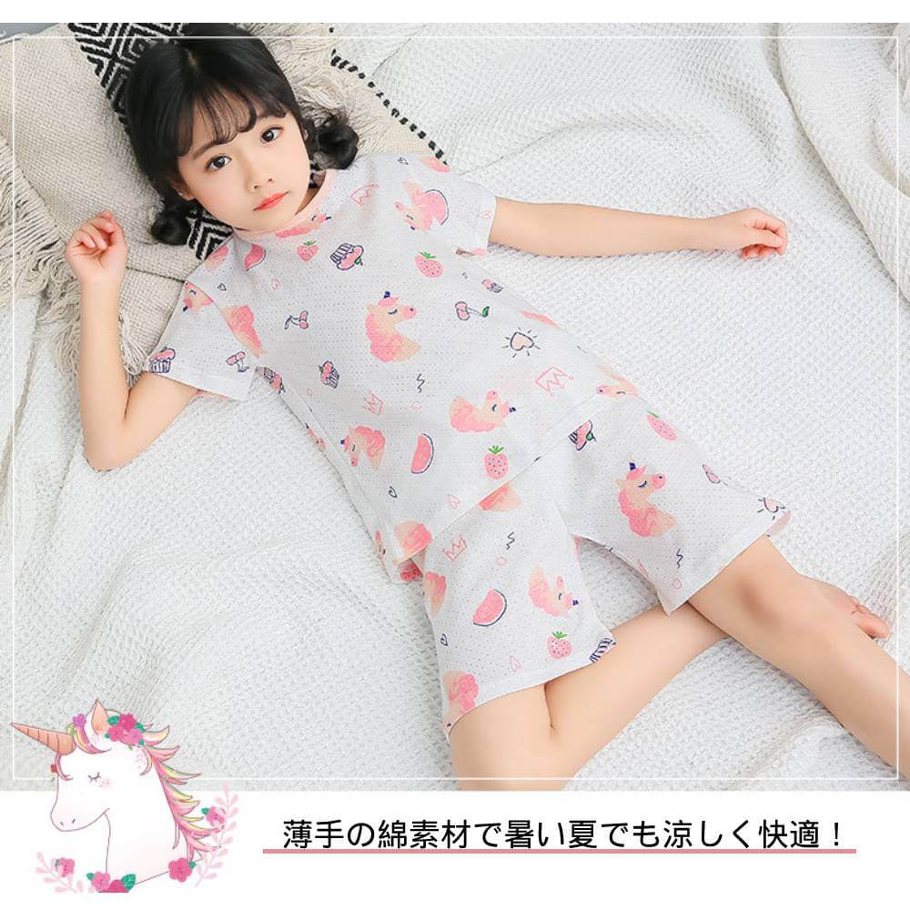 パジャマ ベビー キッズ 半袖 夏 メッシュ ジュニア 子供 男の子 女の子 部屋着 寝巻 ルームウエア 上下セット セットアップ 綿 コットン