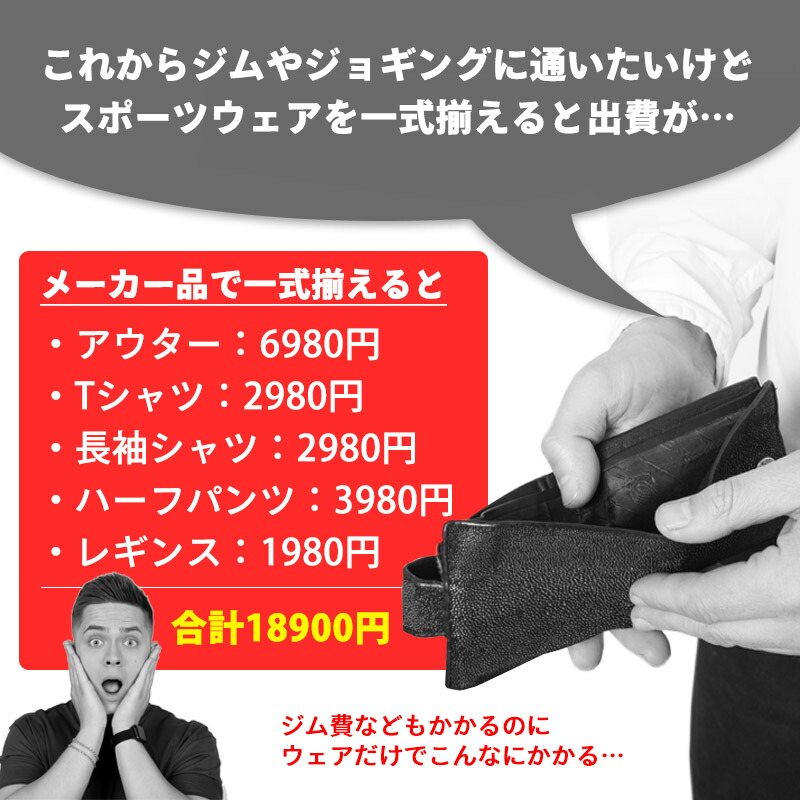 ・ジョギング、ランニングやジムの時にもお洒落にかっこよく着こなせる、コンプレッションウェア5点セット。