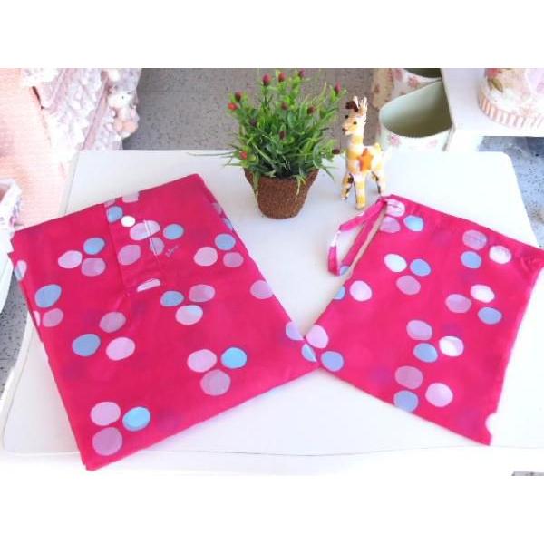 撥水性のある素材のフード付きキッズポンチョです。収納用の巾着袋が付いてます。