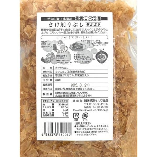 メール便で送料無料!知床標津産の鮭節【華ふぶき 30g】