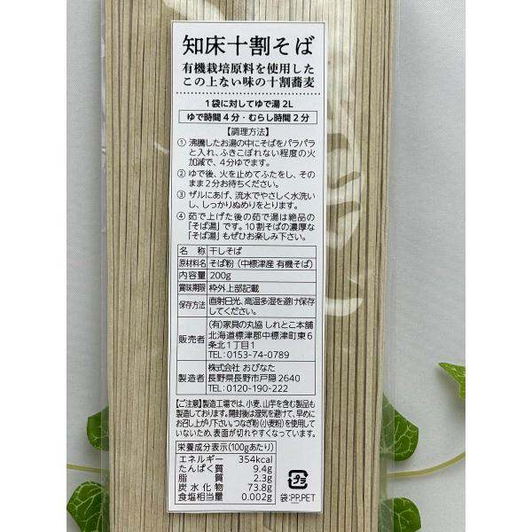 無塩 食塩無添加 知床十割そば 乾麺200g 北海道産 有機十割そば