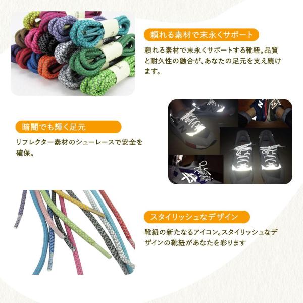 反射 靴ひも 120cm シューレース リフレクター 全11色 1足分2本入り 丸 登山 丸紐 スポーツ 太い アウトドア 結び方 スニーカー おしゃれ 通し方 くつひも 長さ
