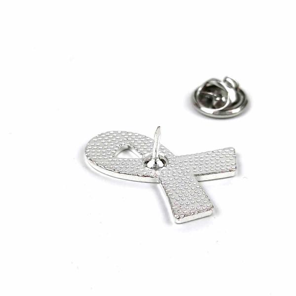 シンプルながら力強いメッセージを伝えるリボンピンバッジ。