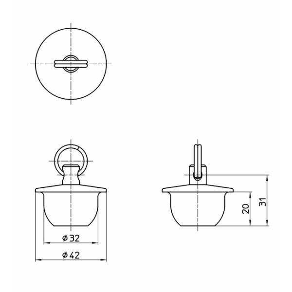 三栄水栓 バス用品・空調通気用品 風呂栓 バス用ゴム栓 PH270F-32 W式ゴム栓で水漏れしにくい 上部直径42mm 栓部分の直径32mm(図面参照)