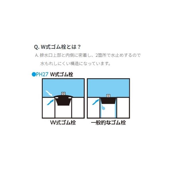 W式ゴム栓で水漏れしにくい お風呂のゴム栓 鎖なし
