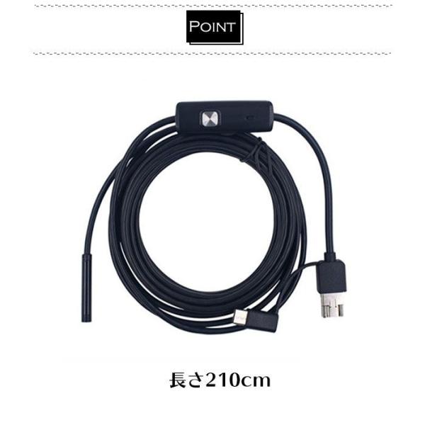 マイクロスコープカメラ スマホ スコープカメラ Android 内視鏡 長さ2m Type-C カメラ 3in1 USB microUSB LEDライト 防水 防塵 直径5.5mm Windows