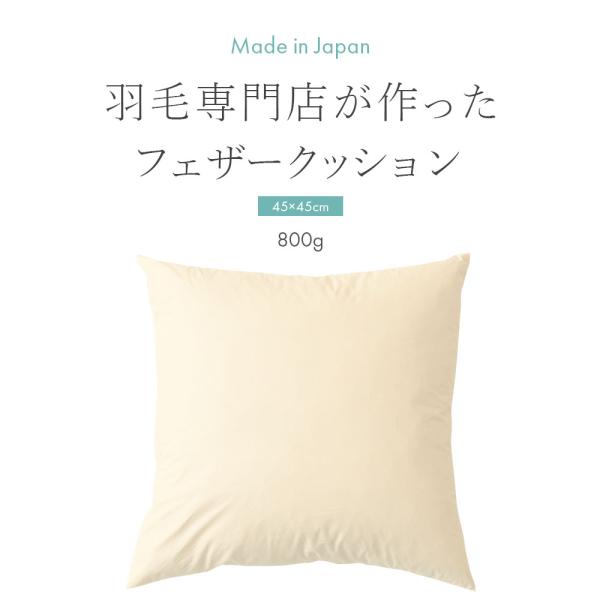 フェザー クッション 45×45 ヌード 四角 スクエア 羽根 スモールフェザー クッション中身 中材 800g 0.8kg