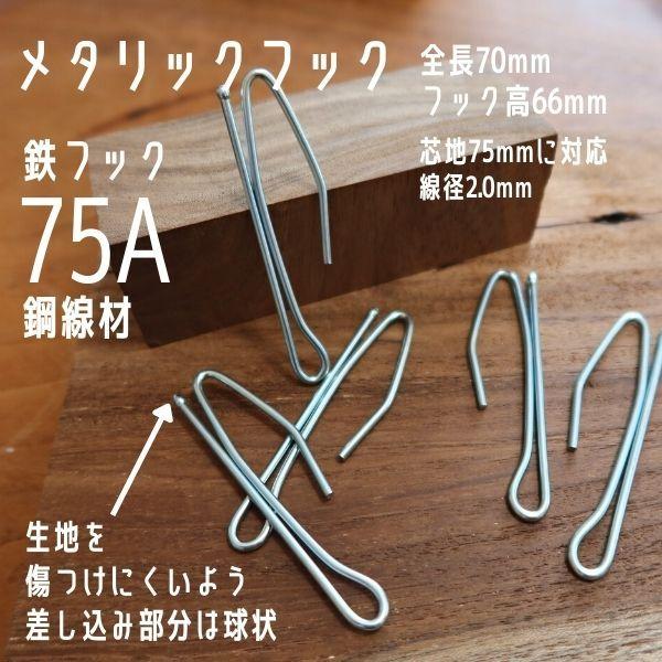 カーテンフック 75mm75A 鉄フック メタリックフック Aフック カーテン資材 プロユース インテリア資材 75芯 ばら売り カーテン 頑丈 丈夫