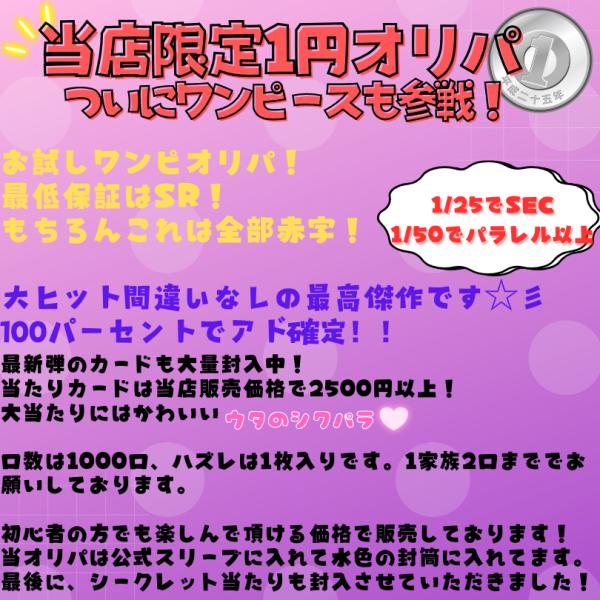 驚きの1円! ワンピース オリパ 1円オリパ 当店を知ってほしくて ワンピースカードゲーム