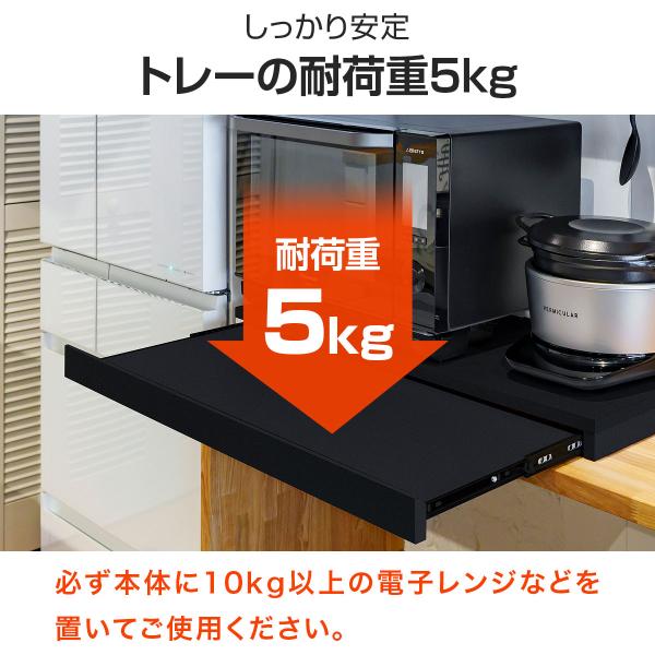 5.5kgの自重にレンジの重さも加わるのでトレーを引き出してもしっかり安定します。