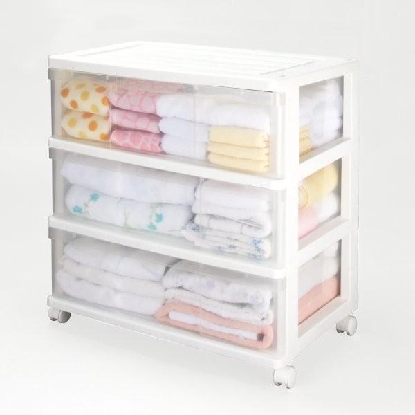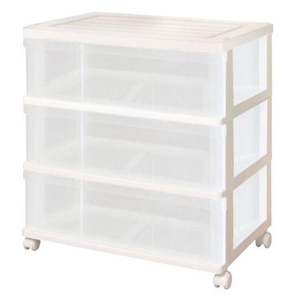 衣装ケース 収納ケース 収納ボックス 引き出し プラスチック 押入れ収納 ワイド チェスト 3段 おしゃれ ホワイト/クリア キャスター付き 送料無料