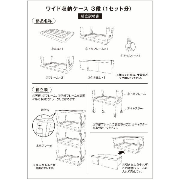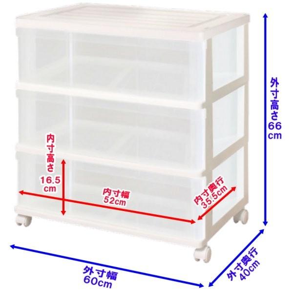 衣装ケース 収納ケース 収納ボックス 引き出し プラスチック 押入れ収納 ワイド チェスト 3段 おしゃれ ホワイト/クリア キャスター付き 組立式 日本製 爆買