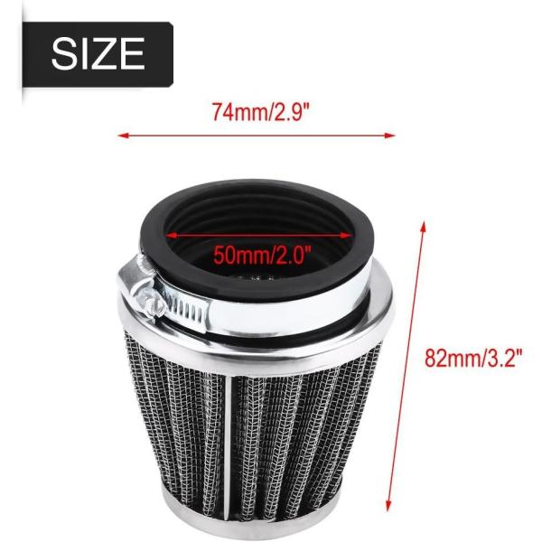 バイク用 パワーフィルター 口径50mm エアフィルター エアクリーナー ステンメッシュ採用 1個 バリオス XJR ZRX ゼファー CB SR Z系等