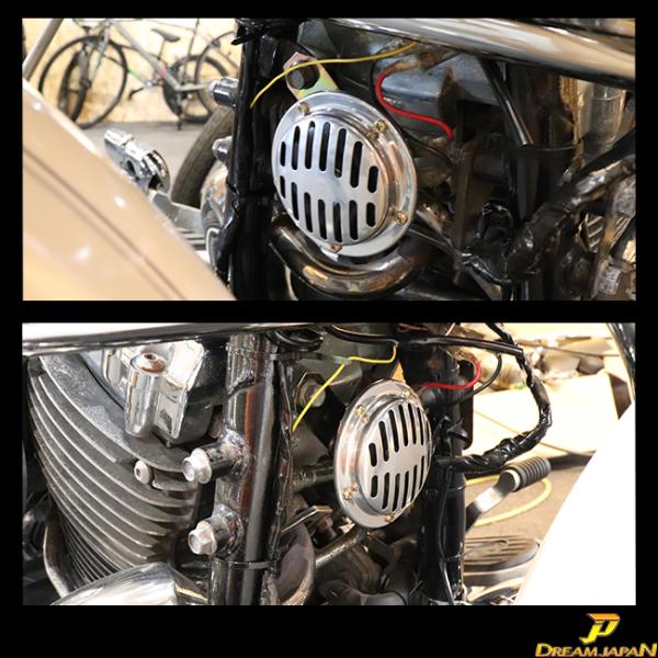 バイク ホーン シングルホーン メッキ アメリカン 汎用 直径 90mm 12v専用 【車検対応】105(db)/マグナ/ビラーゴ/スティード/ドラッグスター
