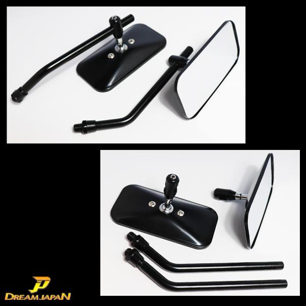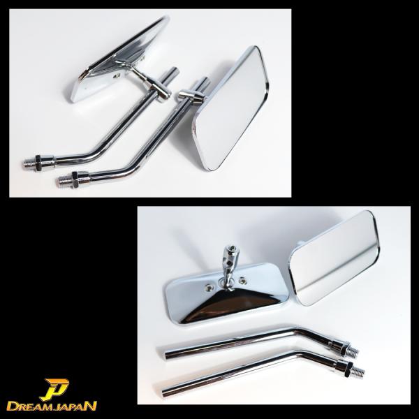 バイク ミニ スクエア ミラー 角型 ヴィンテージ チョッパー OLDスタイル 左右セット 10mm ホンダ カワサキ SR TW FTR【DJ-b169】動画あり