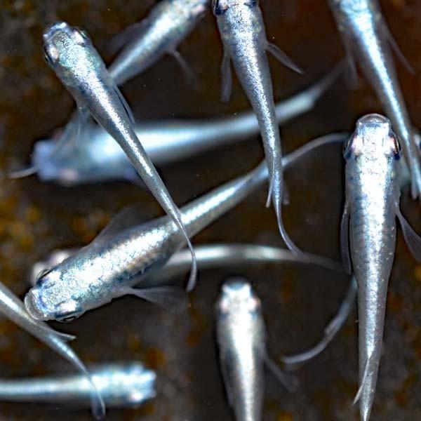 めだかには保護色機能があり、周囲の色により体色は多少変化いたします。