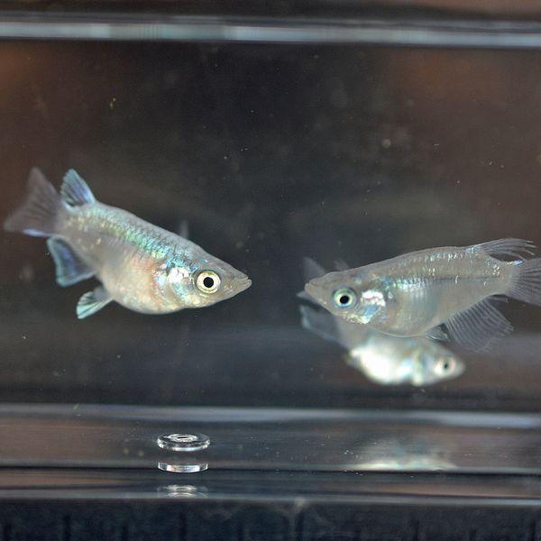 めだかには保護色機能があり、周囲の色により体色は多少変化いたします。