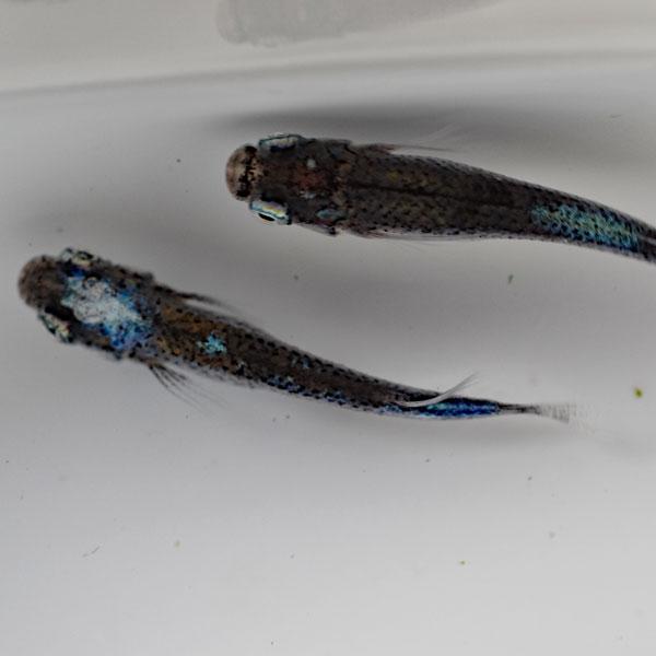 めだかには保護色機能があり、周囲の色により体色は多少変化いたします。