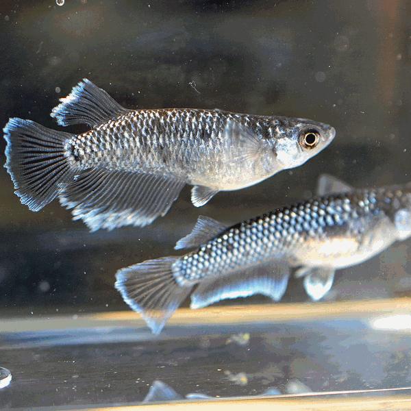 ブラック系の体色にラメが入り、ヒレ光の特徴を持つめだかです。