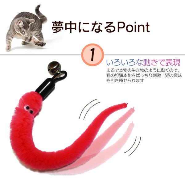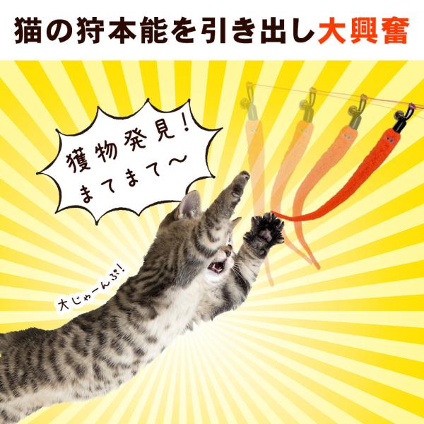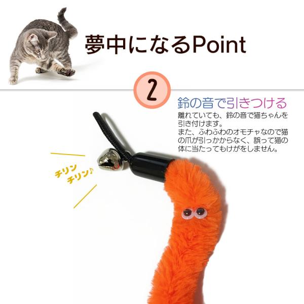 ふわふわした柔らかい感触と生き物のようなリアルな動き、魅惑的な鈴の音で食いつきバツグン、猫のスイッチを入れます。