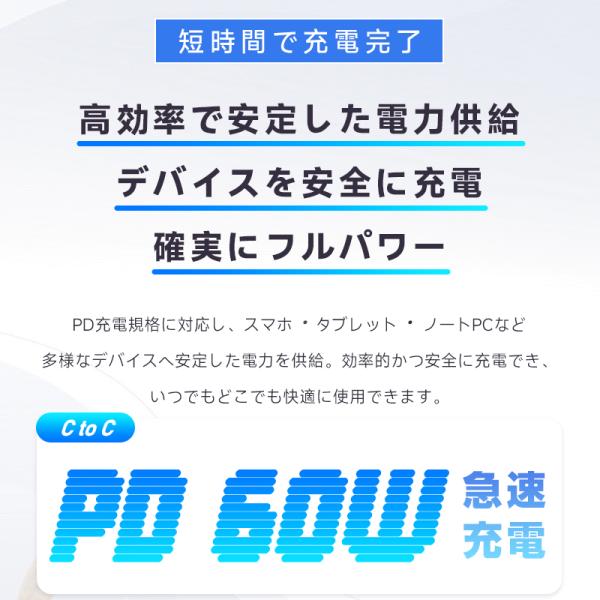 Type-Cコネクターを装備した機器とパソコンを接続し、充電・データ転送が可能なケーブルです。
