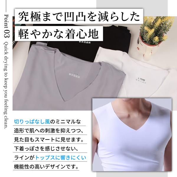 タンクトップ 3枚組 メンズ インナー 速乾 通気 トップス ノースリーブ スポーツ Vネック シームレス Tシャツ ひんやり 涼しい