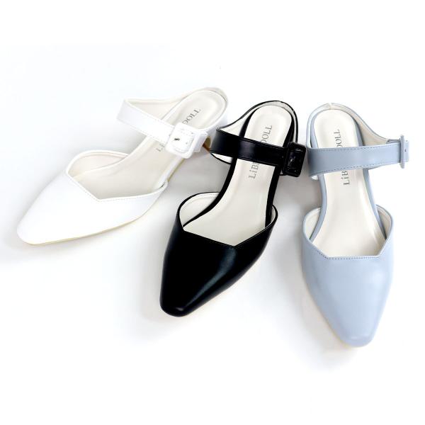 ミュール パンプス スクエアトゥ ストラップ 太ヒール チャンキーヒール ミドルヒール セパレート サンダル つっかけ 踵なし 低反発 クッション 楽 履きやすい 歩きやすい 美脚 おしゃれ 可愛い かわいい きれいめ 大人 上品 合皮 合成皮革 PUレザー 婦人靴 靴 シューズ レディースシューズ 女子 女性 レディース レディス LiBERTYDOLL リバティードール 黒 ブラック 白 ホワイト 青 ブルー 銀 シルバー 3.5cmヒール 0.2cmプラットフォーム S 22.5cm 23cm M 23.5cm L 24cm LL 24.5cm