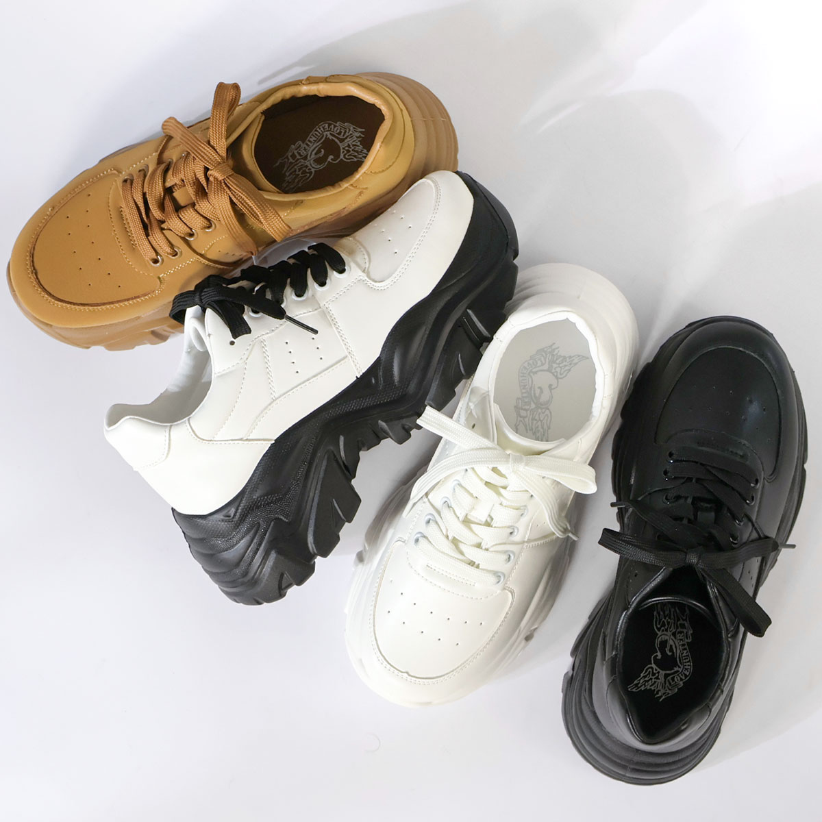 スニーカー ダッドスニーカー 厚底スニーカー レースアップ ラウンドトゥ 厚底 ボリュームソール 軽量 履きやすい 歩きやすい 脱げない スタイルアップ 美脚 足長 脚長 カジュアル スポーティー かっこいい おしゃれ ファッション 通勤 通学 お出かけ 合皮 合成皮革 PUレザー 靴 婦人靴 シューズ レディースシューズ 女性用 女性 女子 レディース レディス 黒 ブラック 白 ホワイト キャメル バイカラー 6cmヒール LOVEHUNTER ラブハンター SS 22cm 22.5cm S 23cm M 23.5cm L 24cm LL 24.5cm 3L 25cm 10代 20代 30代 40代 50代