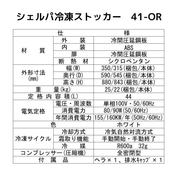 41-OR シェルパ 冷凍ストッカー 業務用 幅315×奥行545×高さ843 mm スライドタイプ 100V 44L -18℃以下
