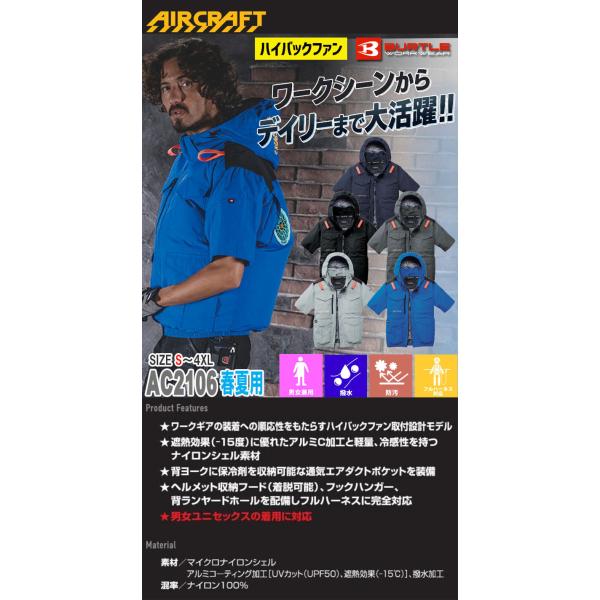 [予約]バートル BURTLE エアークラフト 半袖ブルゾン(ファンなし) AC2106 ハイバック AIRCRAFT 2026年春夏新作