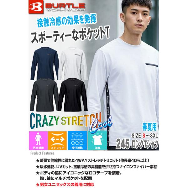 [6月入荷先行予約]BURTLE バートル 245 長袖 ロングTシャツ(ユニセックス) 接触冷感 ストレッチ 春夏 2026年春夏新作