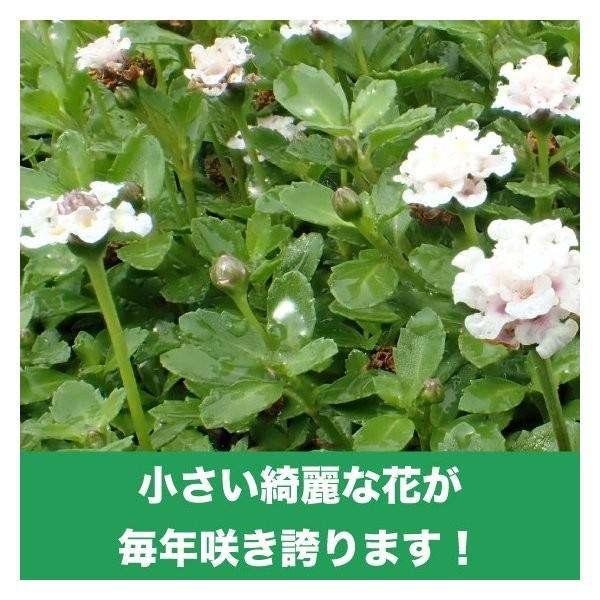 ほふく性で品種によって白色や濃いピンクや薄いピンクの花を咲かせます。