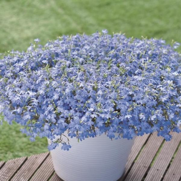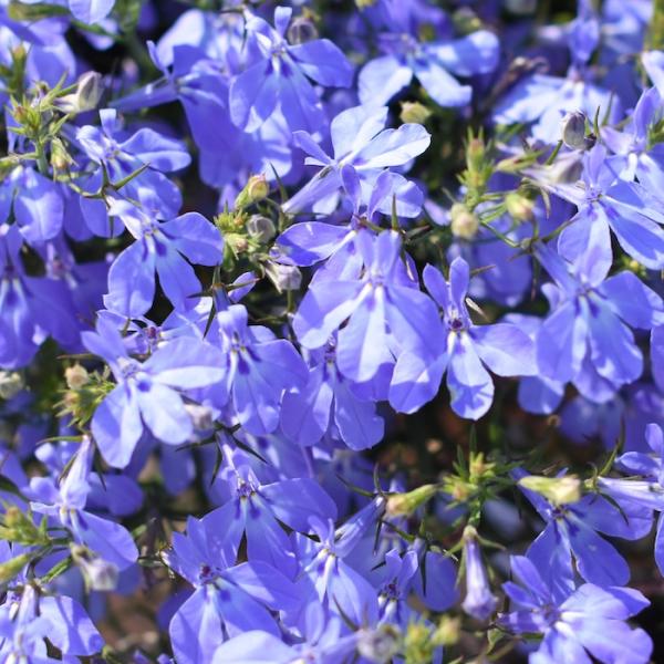 「アズーロコンパクト」は、蝶のような小花がぎゅっと咲きそろい、花密度が高く、こんもりまとまるロベリアです。