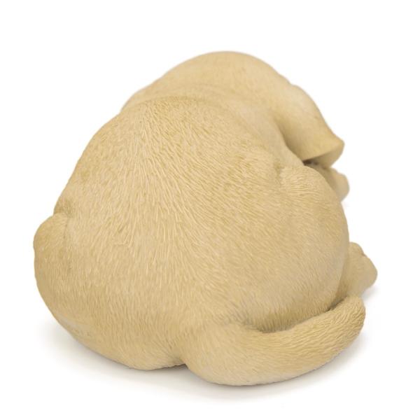すやすや眠るラブラドールは、前足をそろえてあごをぺたんとつけて眠る姿が愛らしい、ポリレジン製の犬の置物です。