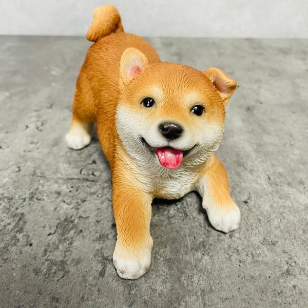 喜ぶ柴犬。可愛い姿の置物で、玄関やお部屋にピッタリ