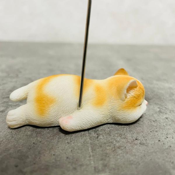 うつ伏せの猫ちゃんが、メモやカードをしっかり支えてくれる可愛いメモスタンド。