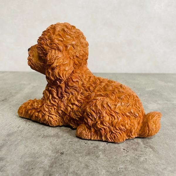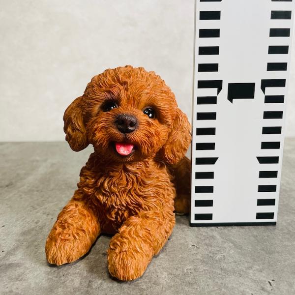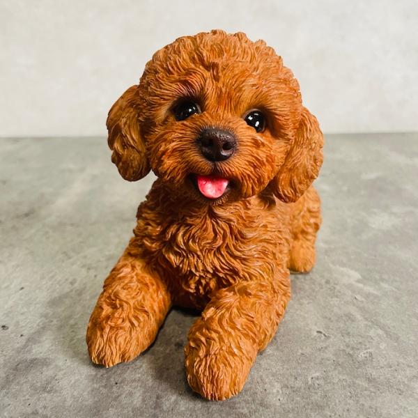 つぶらな瞳でこちらを見上げる姿が愛らしい「見上げるトイプードルの置物。