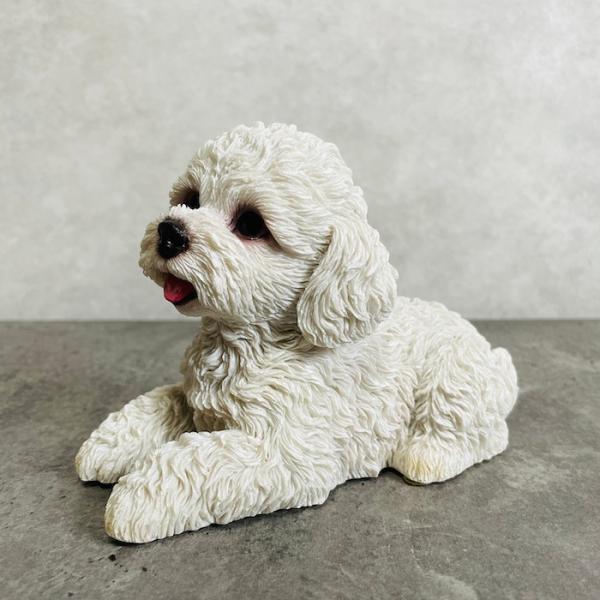 見上げるトイプードル(白)のオブジェ(置物)