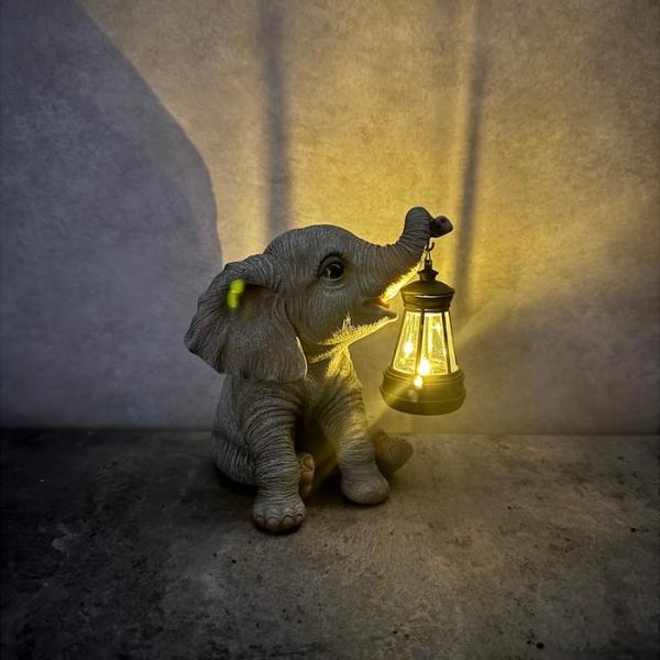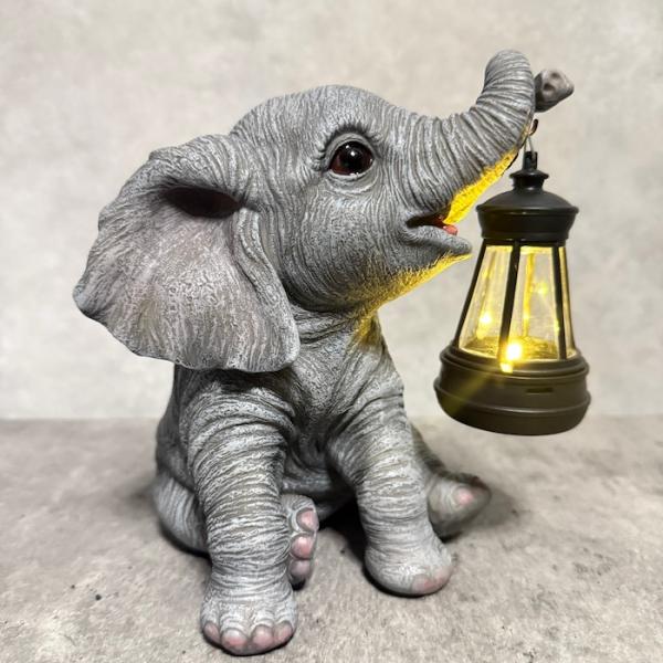 象の置物 ソーラーランプを鼻で持ち上げる赤ちゃんゾウ 高さ15.3cm 縁起物 風水 woobia おしゃれ 大きい 玄関インテリア