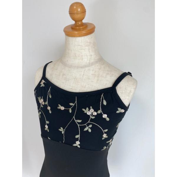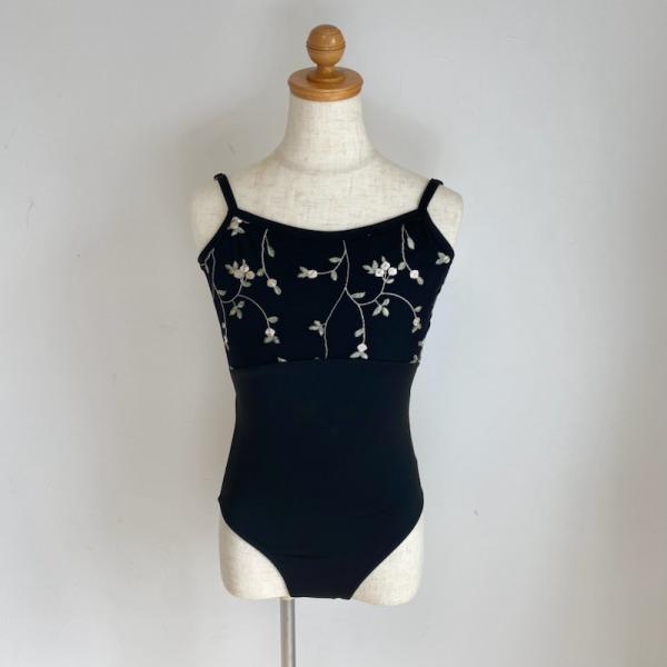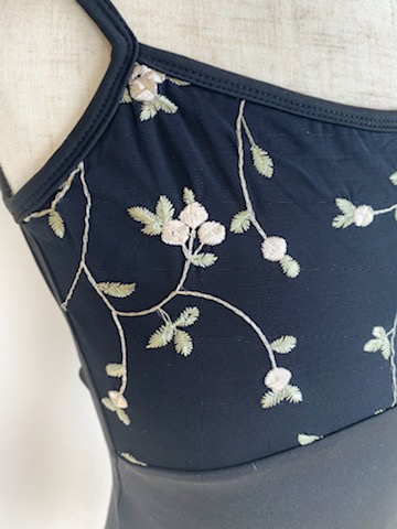 胸元刺繍入りで可愛くておしゃれなキャミソールレオタード。