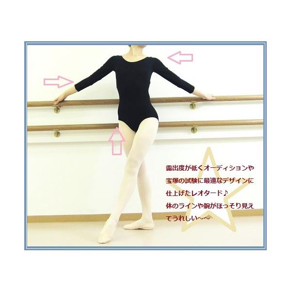 バレエ レオタード ダンス レディース ジュニア 七分袖 宝塚 音楽学校 受験用 ブラック 黒