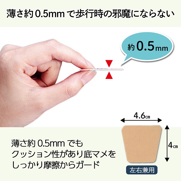 厚さ0.5mmの薄型テープを足裏に直接貼ることで、床の摩擦からしっかりガード。