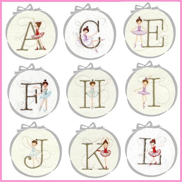 バレリーナとイニシャル(アルファベット)の部分はそれぞれ違う柄で刺繍されています★