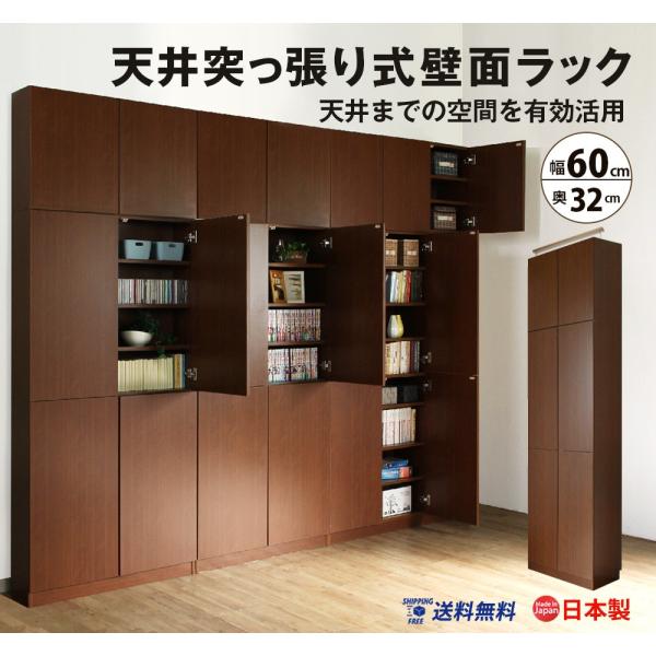 本棚 大容量 扉付き スリム 突っ張り 壁面収納 薄型 コミック マンガ 文庫本 収納 幅60cm 奥行32cm 爆買