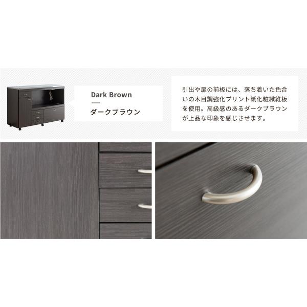 【材質】天板:ステンレス(共通) 前面:ポリエステル化粧合板(ホワイト)・強化プリント紙化粧繊維板(ダークブラウン) 強化プリント紙化粧繊維板(共通)