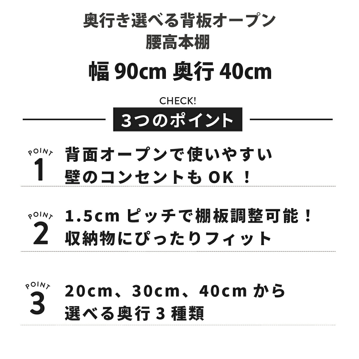 奥行き 選べる 背板 オープン 腰高 本棚 幅90 奥行40cm