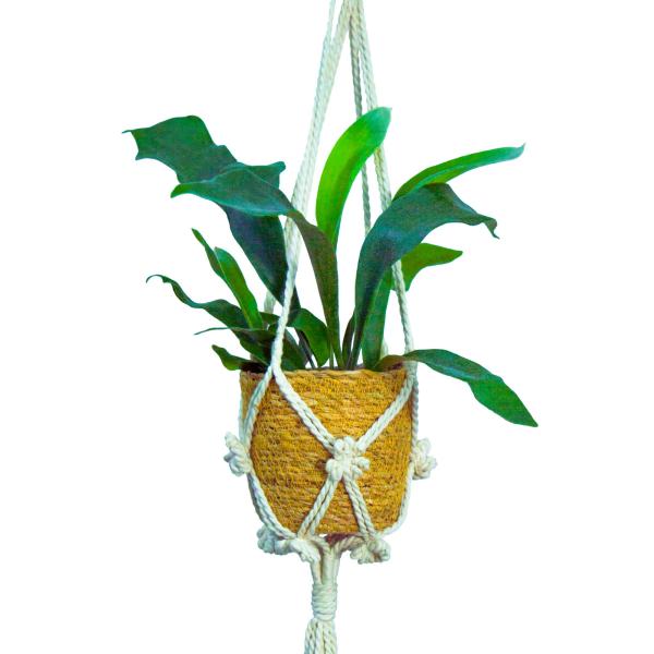 本物のビカクシダ(コウモリラン)を吊り下げ仕様にした、ハンギングビカクシダ(コウモリラン)です。生きている本物の植物なので、光触媒やフェイクグリーンとは違う生命感が溢れた心地よさがあり、リビングなどのインテリアとしておすすめです。苗を入れるカゴと紐はシーグラス素材で、天然素材にこだわったハンギンググリーンです。