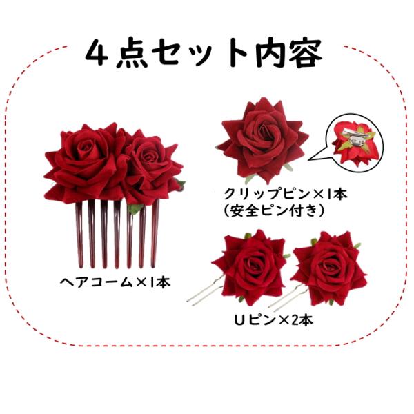 大人気のローズ4点セット ヘアアクセサリー、リニューアルして再入荷しました!